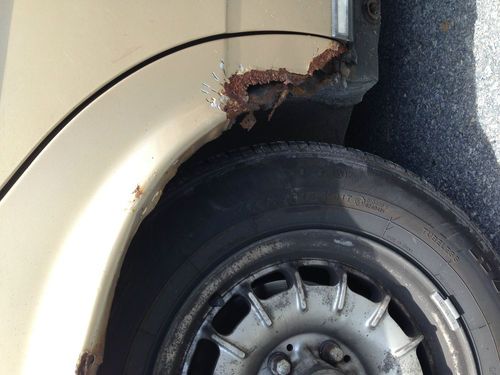 Runs and drives. Shifts smoothly. Starts every time. Oil and oil filter changed within the last 500 miles. Both fuel filters, air filter, battery, headlights, and fuel return lines replaced in the last 6,000 miles. AC, Cruise Control, rear passenger side window, tachometer and windshield wipers do not work. Averages 24 mpg. Interior is pretty clean. Hood latch doesn't hold very securely. Front speakers work; rears do not. JVC headunit with usb outlet. Cut springs. I have two spare wheels. The rear floor of the car is very rusted. Hole on passenger side is pictured. There are also two holes about 2 inches in diameter underneath the front seats on the back, outside corner where the seat bracket should bolt to the floor. Both quarter panels have pieces missing from rust. Right taillight is cracked. Beaded seat covers are not included.