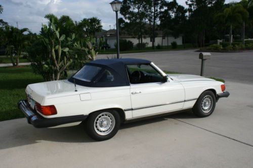 This car has been well cared for. We fancy our cars. It is currently housed in Central Florida in a conditioned garage. Air conditioned and heated. The car is registered at our home in another state. The car has been transported in a covered car carrier from the North. The car is original except for the radio. The engine and time chains(2) were done at 86K. My wife and I drive the car very little but have shown it at car shows and parades. This roadster is a head turner. The paint is very very good. The soft top is new. The interior is original and in fine shape. I have owned the car for ten years. It starts easily and rides exceptionally well. The last time it was shown was in a Christmas parade on Saturday 12/21/13. The 3.8 liter 8 cylinder engine was designed for better gas mileage during fuel crisis in the early 80's. If you are looking for a fun car to drive, that is a classic, you may have found it. Everything works! MB made great cars. They were built for top end speed and high miles. If you have any questions please email me.