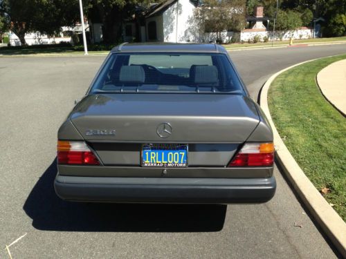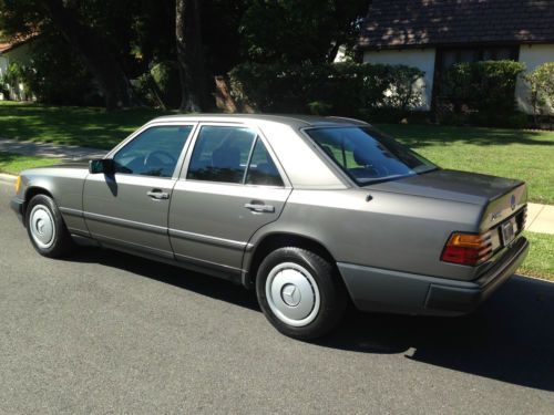 RARE ONE OWNER CALIFORNIA RUST FREE 1985 MERCEDES-BENZ 230E EURO MODEL 124 CHASSIS (EBAY DOES NOT RECOGNIZE EURO VIN# WDB1240231A028096) WAS PURCHASED IN GERMANY AND DRIVEN THERE FOR ONE YEAR AND THEN BROUGHT TO CALIFORNIA AND STILL HAS ORIGINAL BLUE LICENCE PLATES. I HAVE ALL SERVICE RECORDS FOR THIS CAR AND WHEN I SAY SERVICE RECORDS I MEAN EVERYTHING FROM DAY ONE INCLUDING IMPORT DOCUMENTS FROM GERMANY AND DOT DOCUMENTS FROM CALIFORNIA. IT IS A 124 CHASSIS WITH A 2.3 LITER 4 CYLINDER ENGINE IT RUNS AND DRIVES EXCELENT FIRES RIGHT UP HOT OR COLD AND NO FLUID LEAKS OF ANY KIND AND A/C IS ICE COLD. EVERYTHING WORKS ON THIS CAR ALL LIGHTS,GAUGES AND ELECTRIC WINDOWS THE TIRES ARE ORIGINAL EQUIPMENT CONTINETALS (WITH STEAL WHEELS AND ORIGINAL EURO HUBCAPS) THAT HAVE ABOUT 60% OF LIFE LEFT. THIS IS TRULEY A UNIQUE MERCEDES I'M NOT SURE IF THERE IS ANOTHER ONE LIKE IT IN COUNTRY. THANKS FOR LOOKING AND IF YOU HAVE ANY QUESTIONS PLEASE DON'T HESITATE TO CALL THANKS JEFF (626)482-0776.