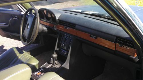 Does have air conditioning but needs to be charged. The Mercedes has its original hub covers, paint is a light blue green color a very sharp color needs to be buffed. Body is sound, has the European bumper styles, undercarriage is clean, inside of trunk is good noted to have a small spot in the trunk need repair noted, doors close nice and tight, hood and trunk closes good, has extra carpets, exterior paint noted to need repair on hood due to pain crack noted, unsure.