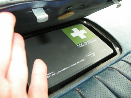 It has the original tool set, and first aid kit