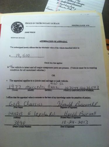 1977 MERCEDES-BENZ 450SL ROADTER. This car has the soft top and the hard top with 103,000 original miles. It has 4.5 v8 motor with auto trans and air condition. This car is in real good shape and was drove up from florida . Its road ready. Call or Text 618-246-3982 ask for skeet. This car is insured appraised at 19,500 . Mercedes-Benz