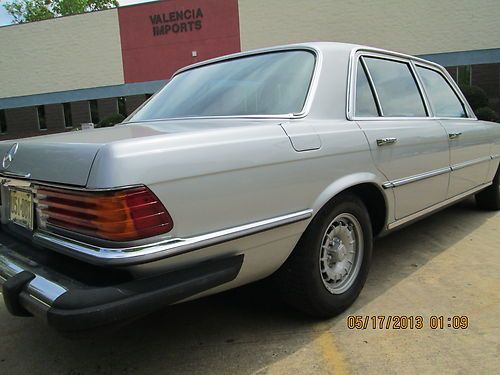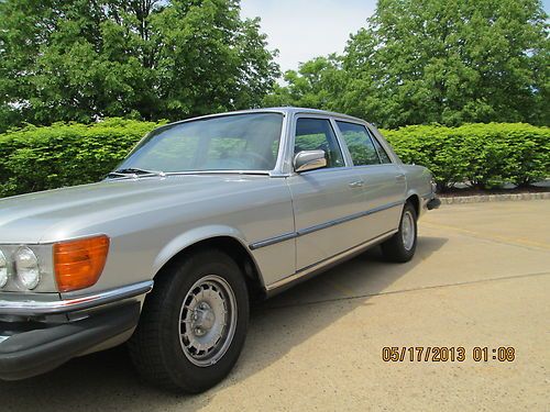 This is a 1978 450sel. It part of an estate. This car is all original and has been owned by one person for 36 years. It has been dealer maintained with all records from the dealer since 1978. The car exterior is astral silver metallic with navy blue leather interior. The climate control is perfect and works perfectly. It has the original radio and cassette player. The power windows, central locking, clock and sunroof all works. The car has no leaks anywhere. This car is all steel and the engine and transmission are built of cast iron. The all season Michelin tires are new. As well as the brakes, rotors,cans pads. Complete tune up, fluids and filters have been updated. All recent services have been done at the dealer . On the open highway, this car cruises easily at 70 mph effortlessly. The engine hums quietly. Truly a very spacious elegant old world german sedan. You must see and driver this car to appreciate it.