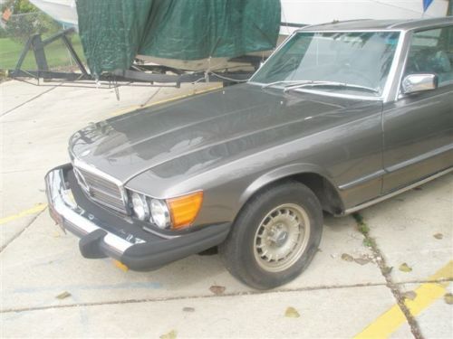 WE HAVE A 1980 MERCEDES BENZ 450SL CONVERTIBLE WITH THE HARD TOP. THE UNIT IS "RUST FREE" . INTERIOR IS GOOD, HAS CRACKS IN THE DASH LIKE ALL OF THEM DO. THE DRIVERS SEAT SHOWS SOME WARE ON OUTSIDE BACK CORNER AND SO DOES THE ARM REST. THE REST OF THE INTERIOR IS IN GOOD CONDITION. UNIT HAS ALL MERCEDES POWER OPTIONS. FACE PLATE FOR THE STEREO IS MISSING. THIS UNIT DOES START AND RUN BUT IT NEEDS SOME TLC. HAD VEHICLE LOOKED AT. THE UNIT NEEDS A GOOD TUNE-UP AND THE COLD START VALVE REPLACED. WHOEVER PURCHASES THIS UNIT WILL RECEIVE A SET OF NEW TIRES ON THE VEHICLE. THE HARD TOP HAS NO RUST JUST PAIT FADING ON THE TOP. UNIT WAS ONCE A FLORIDA VEHICLE. ONE OF THE FRNT BUMPER HADS ARE OFF BUT INSIDE THE VEHICLE. SMALL DENT IN THE FRONT OF THE HOOD AREA. THIS UNIT CAN BE GOOD FOR RESTORING OR GOOD FOR PARTS...CHECK IT OUT AND BID TO OWN. YOU CAN ALWAYS E-MAIL ME WITH ANY AND ALL QUESTIONS. THE UNIT HAS BEEN STORED FOR A FEW YRS , OK...THANKS / BJ