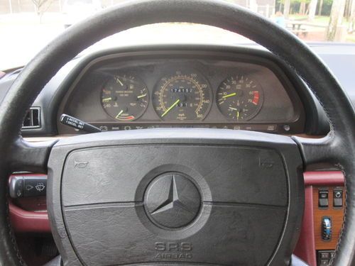 This was the top of the line Mercedes Benz model and comes loaded with options including dual power seats with memory, driver and passenger front airbags, ABS, cruise control, central locking, a/c, Becker Grand Prix stereo and more. The paint and body are near flawless with no dings, dents or scratches. The interior has very little wear and was never smoked in. There are no cracks in the dash and the headliner is like new. Everything works including all windows, locks, cruise, cassette, even the power antenna.