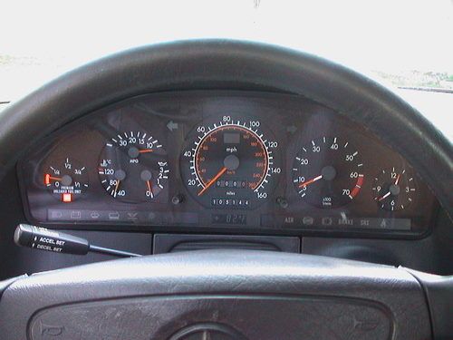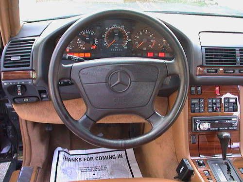 1992 Mercedes-Benz 400SE, 4.2 liter V8, Black with Saddle interior, automatic transmission, 12-way 3-memory dual power front seats w/power headrests, power sunroof w/tilt, power windows, locks & mirrors w/power tuck-in feature, new CD player, mint stock alloy wheels w/Goodyear tires, ice-cold a/c, front and rear illuminated vanity mirrors, cruise control, tilt & telescopic steering wheel, dual front airbags, anti-lock brakes, full size spare w/jack & tools, all original owner's manuals and service books. The body is straight and the paint is in average condition. The lower panels were repainted in flat black. the interior is clean and the front seats are new. The engine is strong and the transmission shifts smooth. This is an Autocheck Assured vehicle and qualifies for their Buyback guarantee. No reserve so place your bid or contact me if you'd like to make an offer.