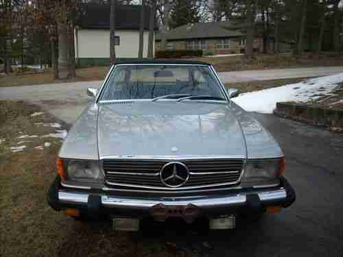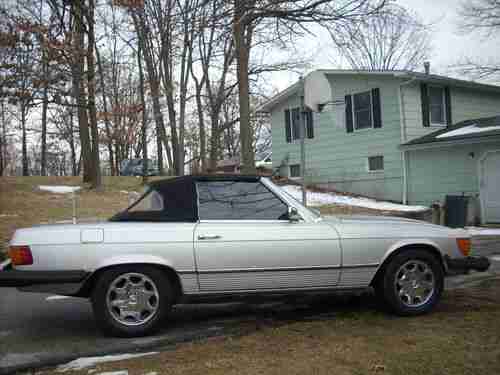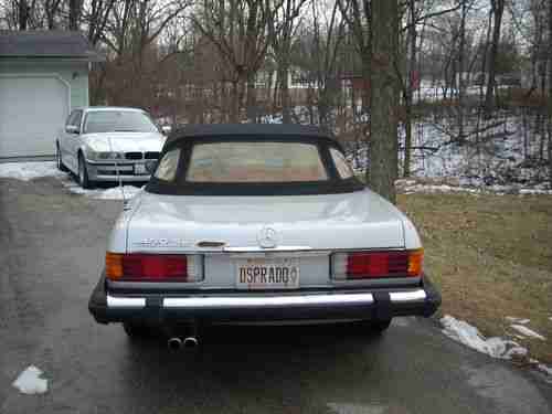 Mercedes-Benz 450 SL 1975. This car comes with a very nice hardtop and convertible top. As you can see from the pictures the plastic glass has discoloration. The top is water tight, no leaks. The car drives and shifts very good, and has nice chrome wheels. The interior is in very good condition, the driver seat is showing slight wear. The dash has two small cracks.