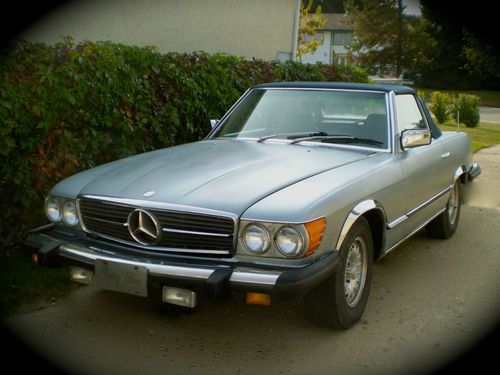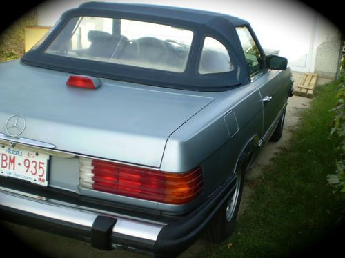 Includes both soft and hard top, full-size spare on Mercedes rim, original first-aid kit and toolkit. A/C, cruise, leather. Hard-top is in excellent shape, it hasn't been used much; the ragtop has a neatly repaired tear on the passenger side, plus I reinforced some spots from the inside that were showing wear. Very good exterior condition, excellent interior condition, lady-driven, mostly-summer car. Tiny bits of exterior trim missing, easily and inexpensively found on eBay. Everything works except ORIGINAL cassette deck doesn't play and antenna is stuck. My favourite eBay parts supplier recommended having the cassette deck rebuilt, but I prefer the radio anyway. Will include replacement antenna to install yourself. Also have extra set of front turn signals, since these tend to take a beating due to their location on the car.