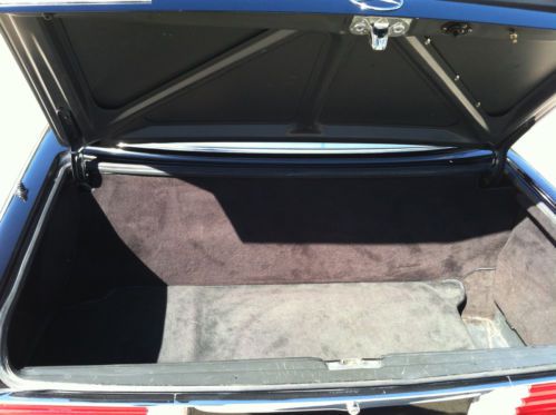 Car comes with a car cover. The car might have been repainted years ago, but if so, it was a high quality repaint of the original black color. The car would have had all the trim, bright-work, bumpers and all else removed as there is no paint on any of them. The red pin striping has been buffed through in several places. There are the very few regular parking lot dings and one bubbled spot of paint on the driver side front fender behind the chrome wheel lip molding and above the belt body side molding, about the size of a half dollar.