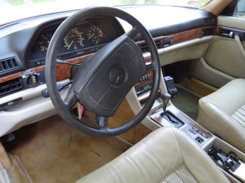 This is an unfinished "Project Car". It was shipped from California years ago, so the Body is in Great condition for it's age. It was a Theft recovery, that's why it has a Salvage Title. It ran last Fall, it turn's over now, but won't start. This Winter was tough on it. The Transmission will go in reverse, but slips when you put it in Drive. I'm thinking a W126 lover would use this as a parts car or a restore vehicle. The Body is solid, the interior is in fair condition. This could be a real deal for someone.