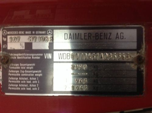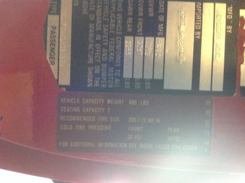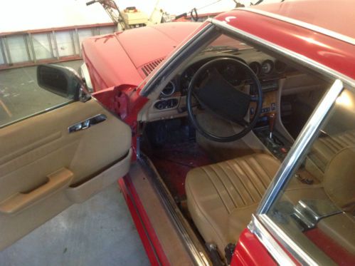 European 1985 imported to Miami - complete car with 93,000 miles. Red with a tan interior. Clean body. Removable hardtop and cloth top included. 5.0 liter motor makes good compression but will not run. Needs carpet and a few interior parts. Great body for parts or someone who wants to spend the time to get it to run. This car does not run and will require a trailer to pick up.