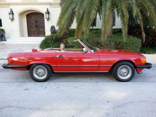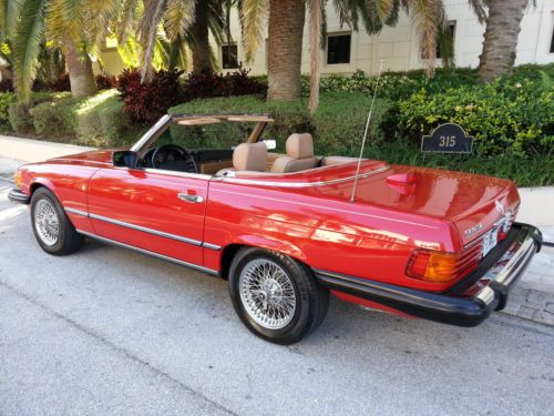 1987 Mercedes-benz 560sl Signal Red Over Palamino Garage Kept Low Miles Fla on 2040-cars