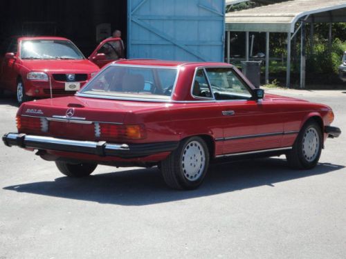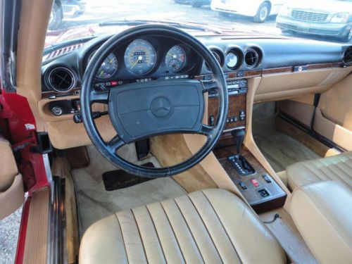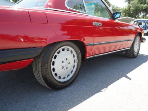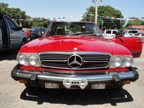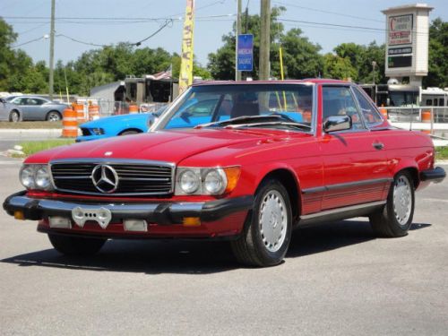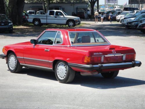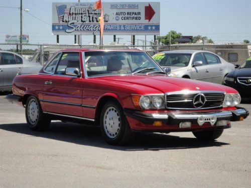 This cherry red Mercedes is a showstopper. The polished chrome paired with the convertible hard top makes this ride a vintage classic. The vehicle has had only two owners in its 26 year lifetime and it shows. Everything has been fully serviced and maintained. Cold A/C, radio works, engine is smooth. This is the SL 560 version, which has the bigger motor for more power than other SL's out there. You can't find a better weekend driver with more luxury and opulance at this price! More photos are available on our company website www.centralfloridaexports.com. Give us a CALL TODAY. Office: 888-420-6954, Cell: 888-420-6954 or email CFEautos@gmail.com. We strive to be 100% accurate! Call us directly to verify vehicle availability or for more details about our in-house financing programs. Prices advertised are cash prices. Can't buy cash? Don't have good credit? No problem. We offer financing for ALL! Si Hablamos Espanol!Central Florida Exports has been Family Owned and Operated in Leesburg, FL since 1980. It has been our goal to provide the finest quality pre-owned vehicles in Lake County for over 30 years. We are conveniently located on U.S. HWY 441. Come in and let us earn your business.