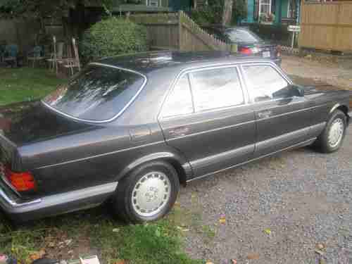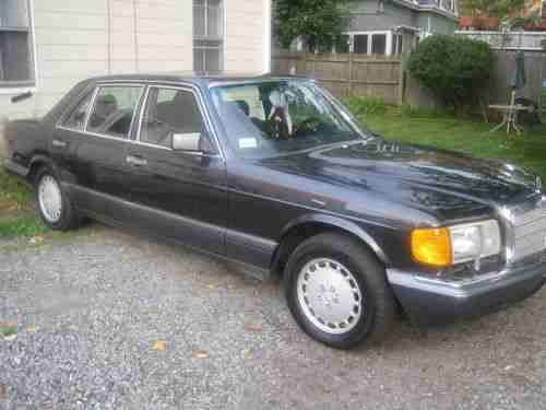 3 day auction on this is a super clean low mileage example of one 1989 Mercedes Benz 560 SEL.The car is simply gorgeous with its charcoal grey exterior and supple red leather interior.Always garaged and maintained car has almost no rust w/one small spot of paint bubble on left front fender.Unnoticeable.This automobile is a pleasure to drive.Super low 94K miles .The power house 5.6 V 8 is super strong.Along with the silky smooth transmission.Everything works including power antenna. Original radio was recently replaced w/ Alpine CD Head Unit and sounds great.I have changed one side of the valve cover gaskets due to seeping.Oil pan gasket seeps a bit I ordered the part.Tires have about 60% tread life left.I drive the car daily and I love it.Torn to sell due to space issues.I have two other cars on the way.You will be hard pressed to find a cleaner low mileage 560.Please email me w/any questions.Good Luck and God Bless.