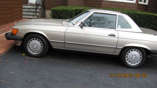 Here is a very nice low milage 1989 560SL,no leaks,runs like a dream,soft and hard tops are like new .My son bought this car for me as a gift .I enjoyed driving it with top down during during nice warm days,but I have a 300SEL that I use most the times,I must sell this lovely 560SL to someone who can enjoy it as much as I have.So come,look ,drive andfall in love with it then take it home.Roll around dolly for hard top is included.Call me at 2013851830