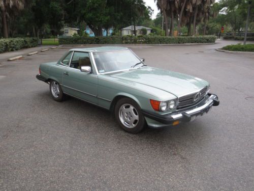 one off the last 560 sl built extra clean no rust.comes with new dark brown top with hard top lift system and mb car cover.drives nice .tranmission shifts good.a/c blows cold out off center vents.dash and wood trim are in great shape.have the orig. radio.have all service records.had new timing chain and tensinoer last month.