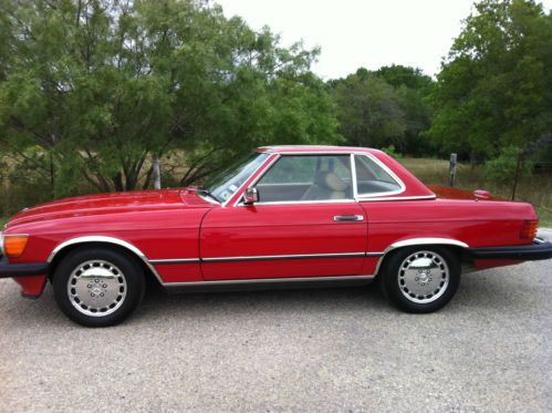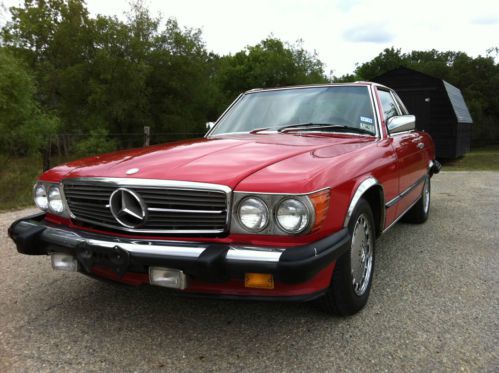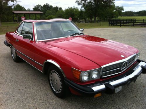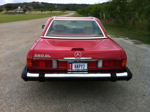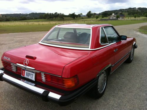 For sale is a gorgeous Mercedes-Benz 560SL with 133,211 original miles! This car is beautiful inside and out. The 560sl is accident free and it comes in one of its most elegant, sought after color combinations Signal Red exterior with Tan interior. It is truly a beautiful and super elegant car! The original paint looks stunning and is still deep rich and shiny. The car is very straight with no dents or damage. Both tops are in great condition and has the pulley system to remove the hard top, which will then hang it from the garage ceiling! The original seats look stunning with only very minimal signs of wear. The dashboard is also original and free of cracks or fading. All wood parts are in excellent condition. The wheels look very nice and the newer tires have plenty of life left. This 560sl has an updated Kenwood sound system. The Mercedes has no know mechanical issues at all! The a/c blows ice cold and the steering is very tight. The 560sl drives and shifts very smooth like you would expect from a classic Mercedes-Benz. This is a very original and pristine example of a 560sl, don"t let this one slip away. We serviced the car throughout and it needs nothing but a new owner! This car really turns heads and is sure to get lots of compliments. We took a lot of pictures so you can judge for yourself. The car is currently driven for test drives, so the mileage at the date of sale might be slightly higher. |