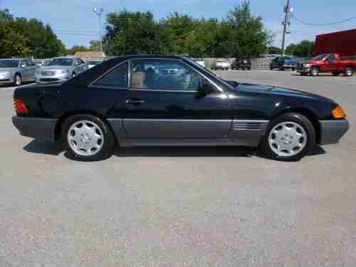 1992 Mercedes-Benz 500SL Black with brown-saddle leather interior. The SL is in excellent condition inside out and drives great. The car comes equipped with leather seats, power seats, automatic, 5.0l v8, factory hard top, soft top, and many more options. The vehicle was acquired throught trade in. The previous owner kept the car meticulously. E-mail or call me at 405-814-9700 if you have any questions about the vehicle.