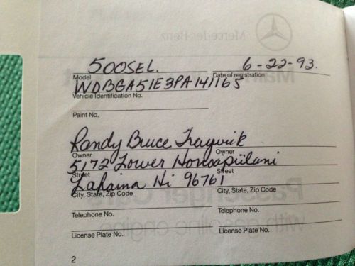 1993 Mercedes 500 SEL originally bought, owned and driven by Randy Travis. 2nd owner selling: Car lists as more than 2 owners. Randy Travis had to have titled in each state he moved to: Hawaii, California, New Mexico, Tennessee. Car most recently titled to organization run by Randy Travis and his wife. Car has only had two owners. Miles are original and verifiable.