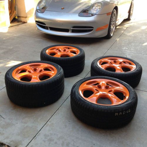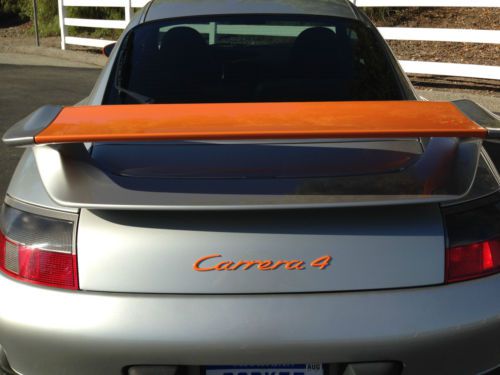 Beautifully maintained 911 Carrera 4 with full GT 3 Aero-kit. Brand New Porsche works engine fitted app. 4 years ago by original owner at a cost of $28,000.00. Putting current mileage of this engine at app. 35,000 miles. Car has been designed to look and sound like a GT3. Car equipped with sports suspension and has custom 18"HRE 2 piece alloy wheels, fitted with Pirelli PZero tires. A second set of Orange painted original Porsche wheels, currently fitted with winter tires, ideal for winter or track racing. Newly fitted performance sports exhaust with Sport Cup sound. Nice matching color coordinated interior features, orange trimmed carpets and matching gear shifter. Blackened tinted windows.