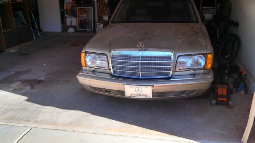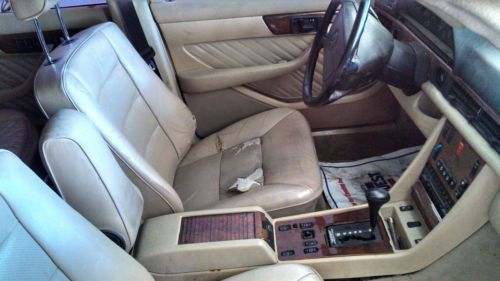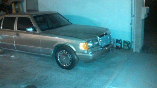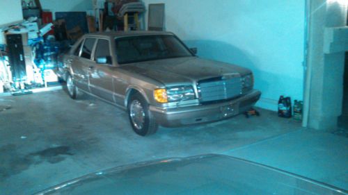 1991 Mercedes Benz 560SEL 4Dr Sedan with sun roof. Very Last Year this Body Style 126 was made, Full Size Vehicle, very roomy with reclining rear seats. Fairly Clean, Need Some TLC on Interior, No Dents . Engine Starts and Runs Great, Needs Tune-up ,Fair Interior, Drivers Seat Needs Some Repair, and Headliner hangs a little and needs some cleaning. Body in Good Shape, Sun Roof need some repair. Some Peeling on Top of Car. Very Low Maintenance needed, Has 73,245 Original Miles. Gold Color with Tan interior, Euro Lights, Mercedes Chrome Alloy Wheels with New tires. Spare wheel also Chrome Alloy.