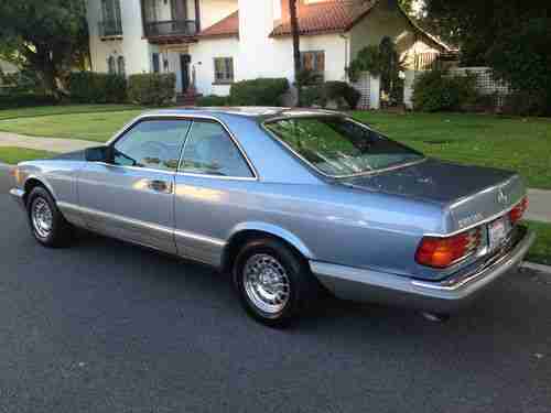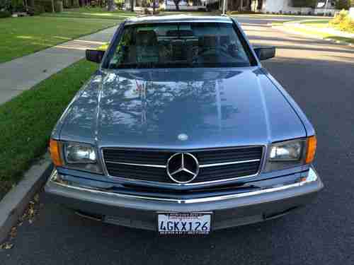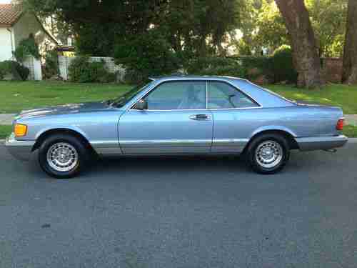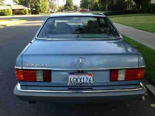 AMAZING CALIFORNIA RUST FREE ONE OWNER 1985 MERCEDES-BENZ 500SEC FINISHED IN THE ORIGINAL DIAMOND BLUE PAINT WITH GRAY INTERIOR THIS CAR IS IN VERY GOOD CONDITION A/C IS ICE COLD AND EVERYTHING WORKS PROPERLY. THIS CAR RUNS AND DRIVES PERFECTLY STARTS RIGHT UP HOT OR COLD HAS BRAND NEW MICHELIN TIRES,BRAND NEW FACTORY RADIATOR,FACORY MBZ BATTERY,NEW FUEL PUMP AND FILTER AND HAS A FACTORY REBUILT TRANS . THIS CAR WAS SERVICED AT BEVERLY HILLS MERCEDES- BENZ AND HAS NO FLUID LEAKS OF ANY KIND HARD TO FIND THIS MODEL IN THIS CONDITION GREAT FOR ANY MERCEDES-BENZ COLLECTOR OR ENTHUSIASTS. THANKS FOR LOOKING IF YOU HAVE ANY QUESTIONS I CAN BE REACHED AT (626)482-0776 THANKS JEFF.