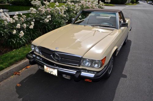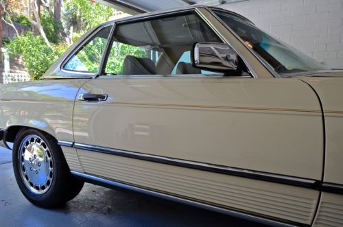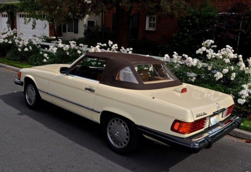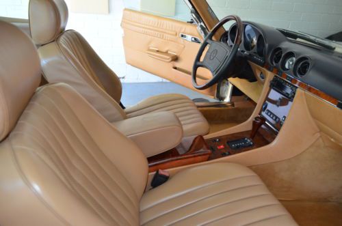 1987 Mercedes 560SL for sale Amazing and gorgeous example of an extremely original 560sl. Original Ivory paint over Palomino interior, factory soft top with crystal clear windows and hard top too. So you know I'm legit and not some spam posting, you can look me up on the web and see my picture and footage of me as well. Go to the well known site IMDB (International Movie Data Base) and put in Dean England. That is who you will be speaking to on the phone and you or your transport company will be meeting to get the Mercedes. If you have little or no ebay feedback, please contact me before the end of the auction to confirm your identity as well. Purchased new and gently enjoyed between San Diego (Escondido) and Palm Springs (Indian Wells) for many years. Then she has lived amongst collectors in Palm Springs and Los Angeles. Her last visit to the dealership was at Mercedes of Encino at 76.022 miles in November of 2011. Clean car fax and receipts document the mileage that is about 78,000 now. You will see on the car fax she has passed every California smog check, most recently on 4/15/2014. Factory books stamped by the dealer to the mileage of about 51k. Extremely high gloss on the original ivory paint is fantastic. Pampered to the fullest from new, including the factory rims chromed (including the spare), hand painted pinstripes and upgraded wood shifter and steering wheel as well as back seats with seat belts, all as they'd do for a substantial extra expense back in the day. Interior is fantastic. There are no dash cracks, tears or damage inside. Ashtray never used. Also at great expense, an upgraded in dash Mercedes CD stereo was purchased at and installed by the Mercedes dealer so it is the correct brand for the car and not some odd looking after market unit. It fits right into the original opening. The speakers in the dash were upgraded as well. Though again, nothing has been cut and no other areas in the Mercedes are cut for speakers as too often is the case in these cars. Dealer receipt included. The Mercedes dealership also upgraded/retrofitted the Air Conditioning system to run on the R134 refrigerant and it blows nice and cold. The soft top is the original, yes original, with all the Mercedes emblems embossed in the crystal clear plastic windows. You can tell the car has seen very little sun or bad weather as the interior wood is not cracking, the soft top is not torn or faded and neither are the windows to it and the body to the car is spectacular. Even the outside rubber in the chrome side moldings are not sun faded or worn. The rubber is just as smooth on the top facing the sun as it is on the bottom. She just got a brand new battery. The metal battery box clamps that are too often broken off are all good. This happens because sometimes people cram in a cheaper battery that doesn't fit right and then try to clamp it down anyway. Not the case here. She starts right up, shifts smoothly. I can email video of her running. I just don't know how to post that on Ebay. When the headlights are turned on, that one small dash light is on that suggests a bulb is burned out. Yet, all blinkers, back up lights, parking lights etc are working. Sometimes this light can come on if an incorrect bulb (even if it works) was put in. I haven't looked into this to see if that's the case. Also, there is the typical small bit of play in the steering wheel when in the 12 o'clock position. This is the 560sl to put into your care if you are looking for original quality that is only going up in value because of its extreme originality along with dealer maintenance over the years and low mileage. Even the the lighted sun visors work and are not cracked or brittle or faded. I have the right to end this auction early in case I reach a deal with someone before the end of auction. If you'd like, feel free to email me your best offer. If it works for both of us I will let you know. I will then add a "Buy it Now" to the auction and you can purchase the 560sl with the buy it now feature. Otherwise, I'll see where it goes. Feel free to email me with any questions. Thanks for looking. |