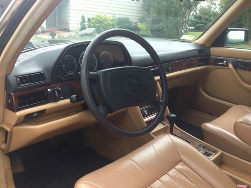 This car is a classic Mercedes Benz 500sel in great condition. It has just under 76,000 miles and these cars are legendary for lasting over a half million miles on the same drivetrain. The car comes with all original parts besides the factory radio was updated with a premium Pioneer unit. The front dashboard speakers were also replaced with premium Pioneer 5"x7" speakers. The audio is clear and pleasing. The engine in this car is a 5.0 liter(303 cubic inches) naturally asperated v8, and the transmission is a center-shift four speed automatic. This car has the smoothest ride you could ask for with plenty of power to get you where you want to go. The interior is in good condition with clean carpet and new custom floor mats. The leater is in good condition with a one wear mark on the front driver seat from the seatbelt, but nothing that is soar on the eyes. The dashboard did have some cracking and pealing that I fixed with 3m interior dashboard glue. the cracks are still visible, but its all there and tough to notice. All seats in the car have heat, and the rear seat in the car reclines. The chrome on this car is all in great condition with little to no wear. The car is used and does have around 24 total micro surface scratches and dings that will not show up on the pictures and are hard to notice unless you look up close. I took the car to a body shop and they estimated the total cost to restore the exterior to brand new would be between $1,000 & $1,500. The sun roof on this car is the largest one I have ever seen. Included as extra is a car cover, the original floor mats, some extra fan belts, and extra rear door trim replacement. Thanks for looking.