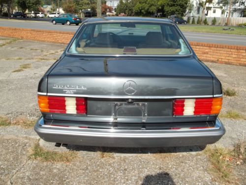 Check out this slick 1986 Mercedes 560 SEC. The Flagship Ride of Mercedes or THE ROADHOUSE CAR from the movies. This is a locally owned garaged Mercedes. This car has been well maintained and serviced over the years. Its is Dark Grey Metallic over Tan leather interior. The paint is in good shape on the car with exception of some clear coat coming off the sunroof and the trunk lid. The car appears to never been wrecked or damaged and to be all original paint. The interior is in good shape. The leather show little wear for its age. The headliner is new. The dash does have two small cracks in it. All Gauges and options function as they should. The AC blows cold. The sunroof works, however it has not opened since the new headliner was installed. I think the headliner is a little to thick. All chrome is in great shape. Both seat belts arms function properly. All power windows, locks, seats work as they should. This car is equipped with a aftermarket in dash CD Player with good sound. The engine is the stock 5.6L V8 and runs and drives out great. Has plenty of power. The transmission shifts out smooth. Equipped also with the cold weather package which includes Heated Seats and Heated Head Light Wipers. The car is also equipped with factory Cruise Control and Fog Lights. The Rims are stock and tire are in good shape. Probably 50 % life left. The car just has been serviced and has a current VA Inspection just done. This sweet ride has ONLY 144000 actual miles. Factory matching spare rim and tools are still in the trunk. These car are going to be collectibles in the future one day soon. You can look as this as a investment since they did not sell that many of these due to them being the Flagship car and one of the most expensive Benz of it day. As the new ones still are today. I cant think of anything this ride really needs but a new good home. Any inspections are welcomed. If you have further questions please feel free to call me or text at 540-537-1223 or e-mail me at general.imports.salem@gmail.com. Thanks for viewing my ride and GOOD LUCK ON BIDDING!!!