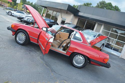 Mercedes 560sl Roadster Convertible 1986 Red / Palomino Only 86k Mi All Records on 2040-cars