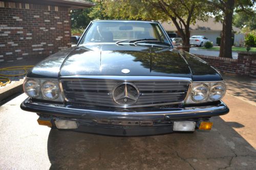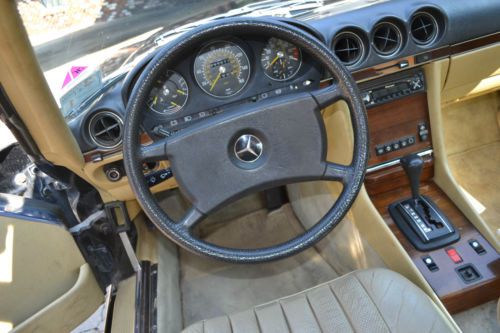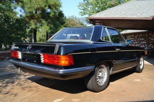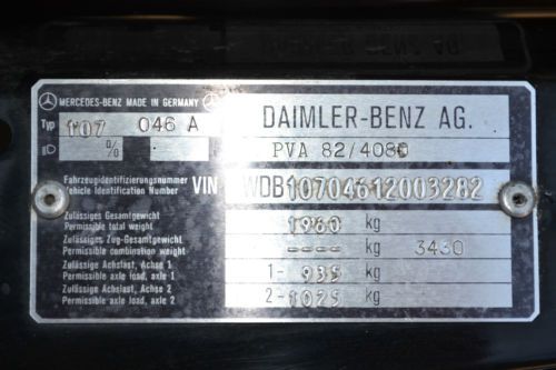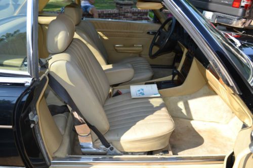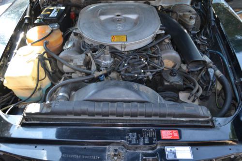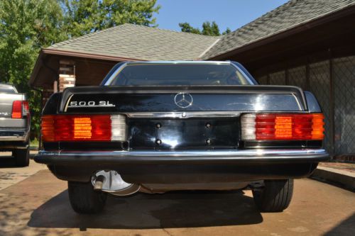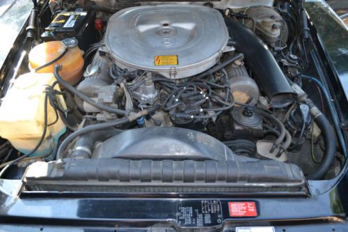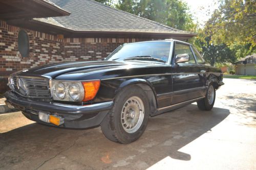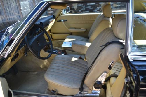 This is a rare R107 EURO 1984 500SL Mercedes Benz.The 500SL were not made for the US market (the 560SL was made for USA Japan and Australia).Despite the larger 5.6 liter engine in the 560SL the EURO 500SL is the fastest production 107 Mercedes ever produced. The EURO 500SL was published by Mercedes Benz as having 0-60 mph times of 7.4 seconds for a top speed of 225km/h(140 mph) with torque of 296lb/ft at 3300 rpm which well outperforms the US 560SL models. This Tuxedo Black with Palomino interior Mercedes comes equipped with its all original 5.0 liter V8 with 4 speed automatic transmission. The car comes with 2 tops (the black convertible top and the matching original hard auxiliary top). Although mileage exempt this Mercedes shows 93K miles. Has upgraded CD player but have the original EURO stereo that comes with the car. The paint and body are in great shape except for a minor crease on the drivers side. The chrome bumpers and trim really look great with the tuxedo black body. The car drives well and starts right up every time. VIN WDB10704612003282 |