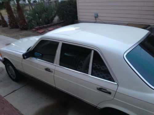 This and is is an exceptional example of the this exceptional 1985 S Class 500SEL Mercedes, vehicle is quite nice inside and out and runs like a new car. The vehicle had been garaged for 6 years and not used. This car is a 4 owner car that has been in AZ.... finish is very nice in Custom Pear White with Darker brown highlights ENGINE: 5.0 liter OHC V8 that's equipped with C.I.S fuel injection STANDARD FEATURES 4-speed automatic transmission Fully independent suspension Power steering Power, 4-wheel disc brakes Anti-lock Braking System Forged, light alloy wheels Steel belted radial-ply tires Halogen headlamps Halogen fog lamps Tinted glass Power mirrors Power antenna that's complete with selective height adjustment Electronic cruise control Automatic climate control Heated rear window Heated seats Power seats Power windows Power door locks AM/FM stereo that's complete with a cassette player Tachometer Rear headrests Rear reading lamps Parcel nets 2-speed wipers Anti-theft system Supplemental Restraint System Front seatbelt emergency tensioning retractors First aid kit OPTIONAL EQUIPMENT OPTIONAL EQUIPMENT Classic Pearl White paint 274 Palomino Leather interior 410 Electric sliding roof |