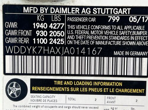 VIN (Vehicle Identification Number): WDDYK7HAXJA014167