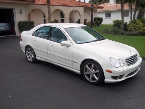This is 2007, one owner, white Mercedes Benz C 230 Sport; no damage history car. Immaculate condition, only 46K original miles. Equipped with V6 engine and 6-speed manual transmission for excellent fuel economy. 22/26 (CTY/HWY) MPG with A/C in use. Grey interior with leather seats, power windows, mirrors (with embedded turn signals), key remote, original radio/CD player, phone wiring, alarm. Sports package for great handling and safety, 4-wheel ABS and traction control, alloy wheels with performance tires (80F/90R % condition), rear spoiler, new wipers. Well maintained car, next "B" service in 8000 miles. (new battery 01/14) Car is located in Ft. Lauderdale, Florida. Buyer is responsible for local pick up or shipping. Requests for more information and questions are welcome. |