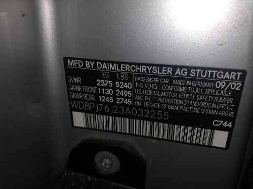 VIN (Vehicle Identification Number): WDBPJ76J23A032255