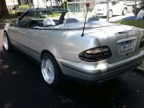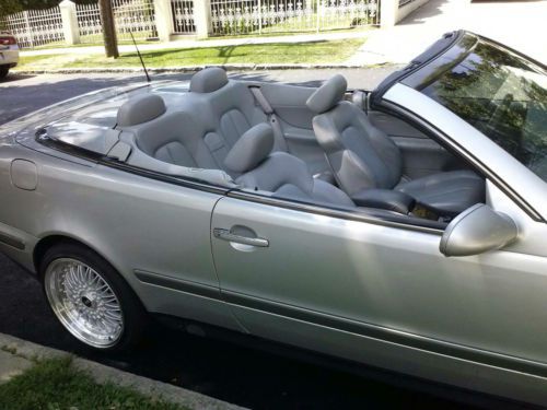 hi for sale I have a 1999 clk320 convertible with 160,000 miles silver and gray leather seats car drives like new and looks good is has two small dents that you cant even see as much and two scratches on the left rear panel and side mirror has a scratch as well you cant tell unless you get close to the car and there are no check engine lights that are on the dash its a real good looking car and all works good in and out of it. the one thing you need to get is the rear third brake light bulbs that go into the truck. thanks for looking at the car.....