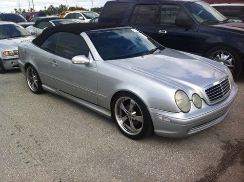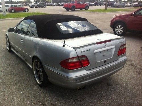 THIS CLK IS VERY CLEAN WITH CLEAN CAR-FAX AND NO DENTS OR SCRATCHES. THE CAR RUNS LIKE NEW WITH NO MALFUNCTION ON THE GAUGE REAR OUT. 2 PIECE FORGED WHEELS AND EVERYTHING WORKS AS IT SHOULD. COLD A/C AND SMOOTH CONVERTIBLE TOP OPERATION. ORIGINAL OWNERS MANUAL WITH ALL SUPPLEMENTS. FRONT TIRES ARE GOOD BUT THE BACKS ARE LIKE NEW. CLK55 AMG EMBLEMS ON REAR LOTS OF POWER AND NO ISSUES. REALLY NICE CAR. PLEASE EMAIL ANY QUESTIONS OR CALL 561-318-0010