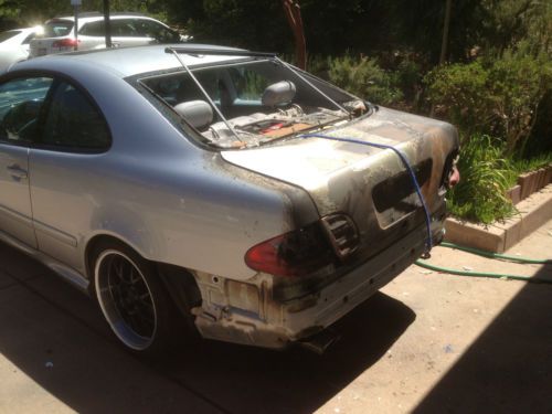 A fire in the trunk has rendered my CLK 430 unusable. Everything behind the back seat is gone. But...Doors, Fenders, Hood, Engine, Transmission are all in great condition. Engine has 90K miles - ran great before the fire. K&N high performance air filters (5k miles), Eibach sway bars. Many new parts in front suspension - was just repaired for $1K. The gas tank did not explode, airbags did not deploy, tires did not pop. Front left tire is flat, rear tires are locked in "P" transmission position. The vehicle must be picked up with a tow truck. Selling parts or the entire car (preferred). |