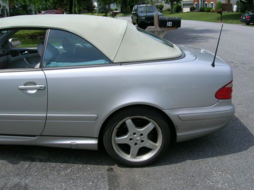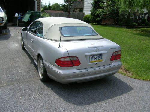 2002 Mercedes CONV,CLK 430 .. Dealer installed AMG package, This has been my daily driver for last 4 years. runs drives great. Cold a/c , great heat. 173,000 and many more to go. Pa. inspection 12/2014. convertible top goes up and down very easy by manual , however power top switch fails work, one of the sensors is bad. I went thro a burger king drive thro and scraped/lite dent passenger side, in front of rear wheel area, slight mark on door, pictured in my photos. driver seat has small tear, were threads or torn,easy fix.. one of the fog lights works some times, and some time it does not. driver front tire has small bump, and should be replaced. I had both front wheel bearings replaced. Because of these few things the reserve is low, so if you want a great reliable car here it is. put the top down and enjoy the summer. ..This a CLK 430...amg package was added by dealer. car being sold as it... any questions call BILL 1-717-617-2444 car is located just south of Lancaster Pa. Good luck Bidding....