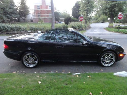 This is my 03' Mercedes Benz clk430 amg convertible. Low 63k. Black metallic with a oyster leather interior. NAVI. Xenon headlights. Heated seats with lumbar support(last 3 are rare options not standard). Car is mint. I'm a little bit of a fanatic when it comes to cars. Paint is glossy and smooth. Interior is fresh. The seam on drivers upper bolster/passenger bottom seat is splitting. Common issue on all CLKs. I was going to have seats re-sewn this winter. Easy fix. Carfax is available(please message me for carfax) and shows ZERO accidents. I'm the third owner. I bought the car is May 14' from a private seller who had the car for 8 years. He kept it in garage and only put 30k miles on it. Car was CPO bought in 06'.Never in any accidents. Convertible top has been done(hydraulic system in April 13'), Rollbar assembly. Car was under MB warranty til 2012. Oil just changed(synthetic). All filters. Car runs great. It has 18" staggered chrome wheels. Stock AMG included also. Tinted windows. This is the one if you're looking for this car. Please serious buyers only.. Thank you