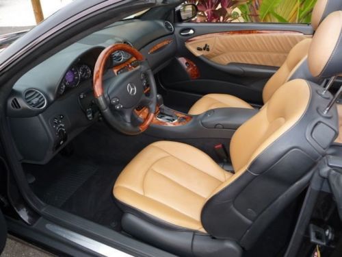 | Here is a 2004 Mercedes Benz CLK320 Convertible with the very rare Espresso Designo package. This convertible has been a lifelong Florida kept vehicle. It has an original MSRP of $63,805 and is shown in Obsidian Black Metallic on Premium leather with Napa Light Brown inserts. It comes with the incredibly rare Designo package from Mercedes which includes premium Napa light brown leather two tone seats, natural maple wood trim on wheel and dash, Alcantara suede A pillars, and Designo badges. This option alone was $6900 from Mercedes Benz and is extremely rare. Here is a breakdown of the MSRP and other options on this CLK320.Keyless GO (push button start and key recognition) $1040Espresso Designo Package $6900Obsidian Black Metallic Paint $670Command Integrated Navigation System $2170Heated Seats $670This Espresso Designo CLK is in