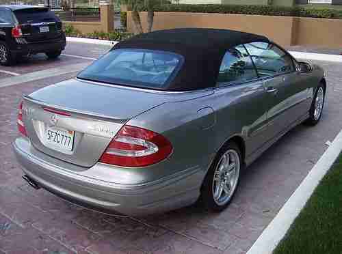2004 Mercedes CLK55 AMG Convertible. 5.5L V-8 engine with automatic Tiptronic transmission. Clean Title, Everything is power, premium leather seats, dual climate control, premium sound system with 6 C/D changer, very clean leather interior, and suede headliner. convertible top works flawless. All Aluminum interior trims. Nice paint and body with NO dings or scratches it's silver titanium exterior with light gray interior. The only thing don't work is steering tilt, but telescopic works fine. New tires, smog ready, current registration good till Feb/2014. All services are up to date. Runs and drives very smooth and it has NO malfunctions warning indicator.