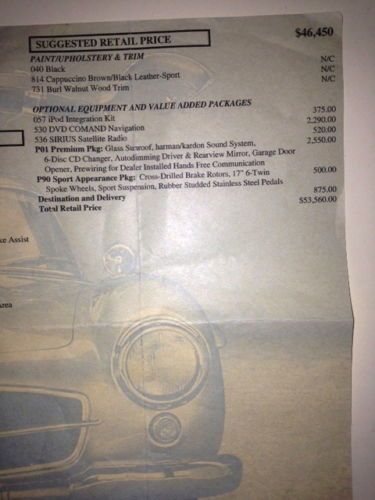 CARFAX DATED 8/23/2013 $53,560 sticker (I have it), FULL OPTIONAL; NAVIGATION, PREMIUM PKG P01, SPORT APPEARANCE PKG P90, IPOD INTEGRATION. BEAUTIFUL BLACK WITH RARE/SPECIAL ORDER CAPPUCCINO LEATHER INTERIOR. I BOUGHT THIS CAR ON AUGUST 22ND 2008 AND HAVE BARELY DRIVEN IT; LESS THAN 24K MILES IN 5 YEARS! GREAT CAR AND ITS BEEN MY BABY SINCE NEW! SERVICE AND MAINTENANCE IS CURRENT INCLUDING SERVICE 2 WEEKS AGO WHERE I HAD A SYNTHETIC OIL AND AIR/CABIN/ENGINE FILTER CHANGE, FULL BRAKE SERVICE WITH NEW FRONT AND REAR ROTORS/PADS AND SENSORS THE BAD - THERE ARE SOME SCRATCHES ON IT AND I’M PROVIDING PICTURES; SORRY I’M A GIRL! ;-). IT'S MOSTLY SMALL SCRATCHES ON REAR BUMPER/MIRROR AND A BIT OF CURB RASH ON RIMS; TIRES ARE CONTINENTAL AND THEY ARE ALL NEW WITHIN THE LAST 6 MONTHS. THE INTERIOR LOOKS/FEELS BRAND NEW EXCEPT FOR THE SMALL SCRATCHES BETWEEN THE TWO AC VENTS...SEE PICTURE. I HAVE BOTH KEYS/FOBS. FOR ANY QUESTIONS CALL 305--773-7724 OR 305-724-4250 |