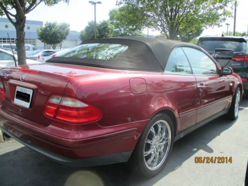 This 1999 Mercedes Benz CLK-320 is ready for you to hop into and drive away. She has her fair share of wear and tear for her age, we have place seat covers over the seats and had her cleaned up. We have done conducted all the necessary maintenance and now she is just waiting on you to purchase her and drive her away. This is a great second car and did I mention she is a beauty. There are even rims on her. My husband and I purchased this vehicle from an auction only months ago for our daughter only to find out a teenager should not have a red convertible Mercedes for a first car. Buyer is responsible for shipping of vehicle to your location. |