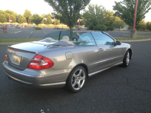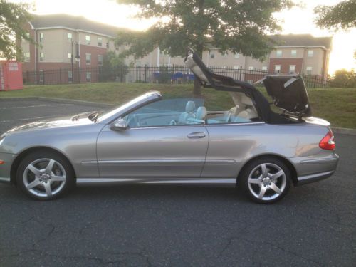 I am selling my 2005 Mercedes Benz CLK500 Convertible. It has a black top and pewter exterior.This car is in Great shape.It has always been garaged kept, never involved in any accidents.It does have a slight scrape in the bottom of the front bumper from hitting one of those concrete stoppers in a parking lot.It is not noticeable. I have done all the maintenance, just got the oil change done. everything works on the car, no issues, just replaced 2 rear tires as well. I have had the car for almost 2 years now.The car has just about 59600 miles. The exterior is in great shape.Rims do not have any curbrash. any questions about the car please call me at 908-930-8682