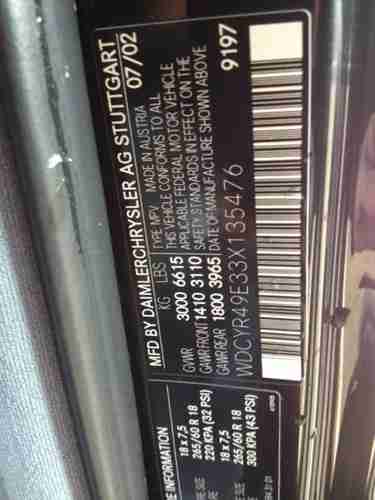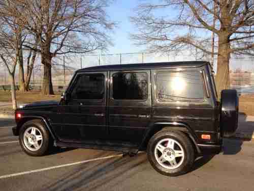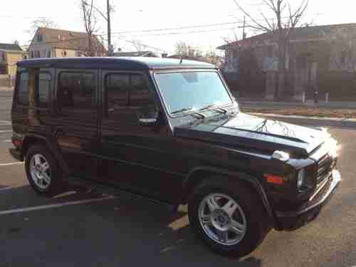 2003 MERCEDES BENZ G500 BLACK WITH GREY INTERIOR. HAS G55 PERFORMANCE PACKAGE INSTALLED. THAT INCLUDES G55 RACE BRED SUSPENSION, AMG RED COLOR BRAKE CALIPERS FRONT AND BACK, G55 RUMBLING EXHAUST, ZENON PROJECTOR HEADLIGHTS, NEW STYLE UPGRADED FRONT FOG LIGHTS, UPGRADED FRONT GRILL, ALL BLACK, TOW PACKAGE. TIRES ARE NEW, JUST SERVICED WITH FRESH SYNTHETIC OIL CHANGE.... RUNS NEW. LOOKS AWESOME AND MEAN. SOUNDS LIKE A 120 THOUSAND DOLLAR EXOTIC.. JUST EXILIRATING TO DRIVE AND TO LISTEN TO....IF YOU EVER WANTED A G55 BUT DID NOT WANT TO SPENT AT LEAST 45 THOUSAND YOU CAN HAVE THIS ONE FOR A FRACTION OF COST.. DONT MISS IT ITS ONE OF A KIND ESPECIALLY AT THIS PRICE AND IN THIS CONDITION....