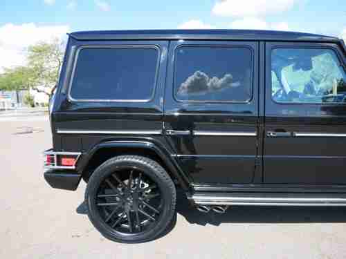 This G55 is ready for its new owner and features many desirable options like factory navigation, back up camera, heated seats front and rear, heated steering wheel, wood steering wheel, 24inch custom black Gianelle wheels, designo interior, parking sensors, sunroof, 6disc CD, chrome brush guards, memory/heated power seats, harmon kardon 5.1 premium sound, and much more.
