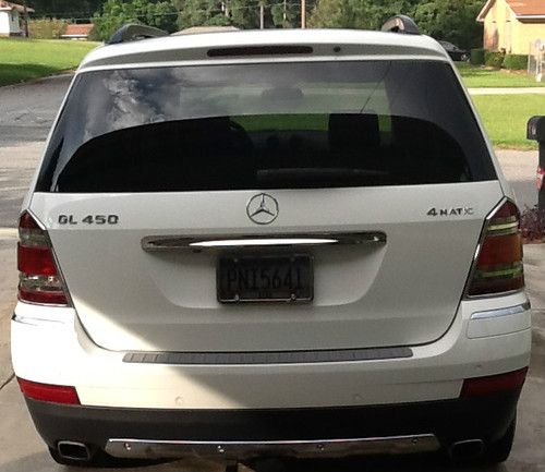 This Artic White 07 GL 450 is in excellent condition, All the service records are with the car, The exterior paint is in great shape, I'm the 2nd owner and just had a Schedule "D" Service performed on 16 Aug 2013, Replaced the battery, Replaced 8ea spark plugs, Replaced 2ea Air Filters, Flushed Brake System, Rotated all 4 Tires and Replaced an "O" Ring on the Power Steering Pump. All 4 tires are in great shape, The 19" Rims are CHROME!, The leather seats have NO signs of wear, NO tears, the asking price is below the KBB and NADA book values.