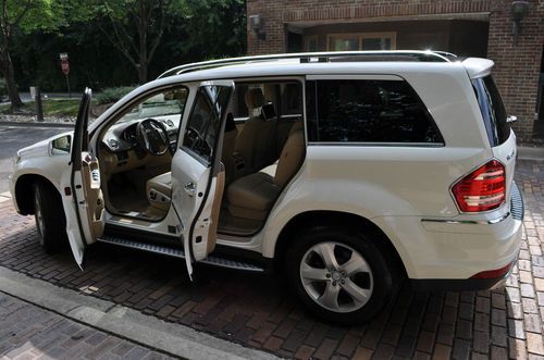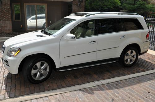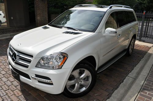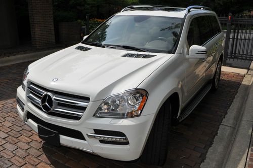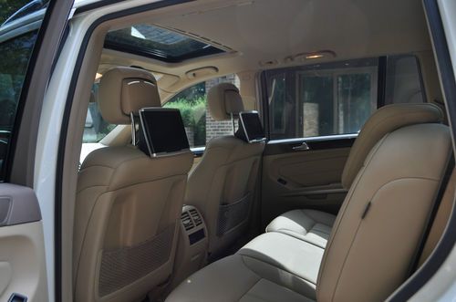 You are viewing a super super GORGEOUS and RARE colored DIAMOND WHITE matched with Gorgeous TAN leather seating surfaces 2012 Mercedes GL-450 Executive edition with the premium package loaded across the board in IMPECCABLE condition!!!!..............GORGEOUS CAR!!!............Only 15,093 miles!!!.......AWD(All-Wheel-Drive)........4.6 Liter 4966CC V8 GAS SOHC Naturally Aspirated engine with ridiculous torque and power in superb condition mated to a 7 speed automatic transmission.......Harmon/Kardon Premium audio to go along with a 6 disc cd changer..............Dual Pano roof and Power sliding an tilting moonroof which features 5 sunroofs and only comes on the executive package...........HEADREST DVD entertainment setup on both rear headrest and best of all built by MERCEDES..........Voice activated NAVIGATION system with pinpoint accuracy to take you anywhere needed in style and is mated to a media outlet that incorporates all your gadgets into one in a gorgeous layout............POWER FOLD mirrors which retract in/out with the push of a button and are perfect for ATM's and car washes---These mirrors have the EUROPEAN designed glass which lets you view far and away rearviews and are very hard to come by.---These mirrors also come with BLIS which is a blind spot technology built into these mirrors which alerts you if anyone is in your blindspoty before switching lanes.......Fog lights.........Dual headlight washer jets which are perfect for icy and dirty conditions............Power HEATED dual leather seats to go along with a 12 way adjustment package including lumbar...........Running boards with built in L.E.D lighting which illuminates onto the boards whenever doors are open.........BI XENON adaptive premium Mercedes headlights which cost over $2,400 a piece dealer price........Wireless bluetooth.........18" aluminum wheels with premium SPORT tires to match.........Power windows........Power locks..........Interior woodgrain premium trim...............6 disc cd changer............Rain sensing windshield wipers....................Available in the most prestigious color combo out there DIAMOND WHITE with the HARDLY TOUCHED TAN leather interior..........ABSOLUTE AWESOME CONDITION!!...Impeccable ride across the baord and still smell BRAND NEW with only 15, 093 miles.