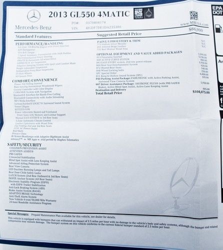 2013 Mercedes-benz Gl550 Silver Sport Utility 4.6l Fully Loaded! Paid $105,982 on 2040-cars
